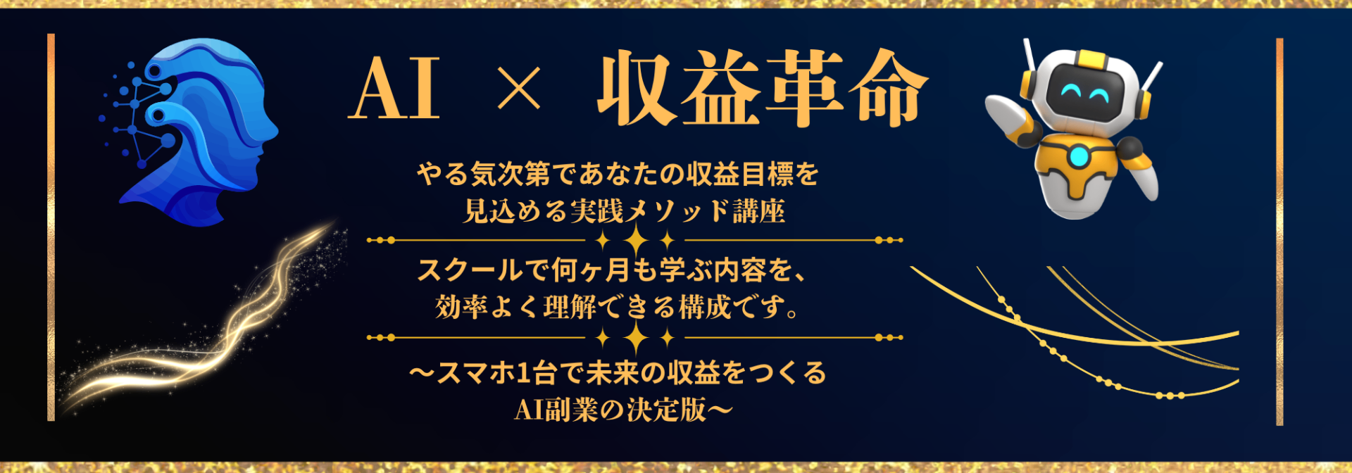 「AI×収益革命」は、AIを活用した副業の基礎から実践までを、スマホ1台で取り組みやすい形にまとめた教材です。